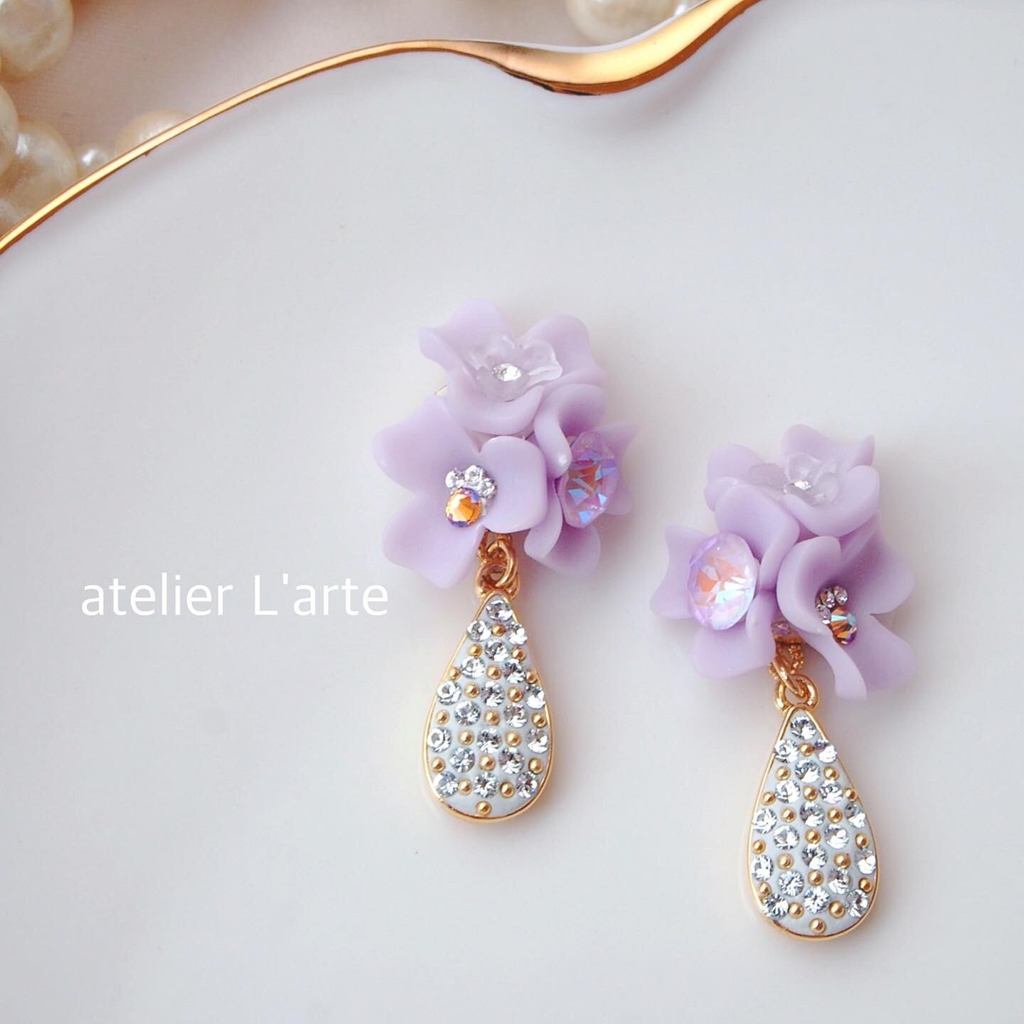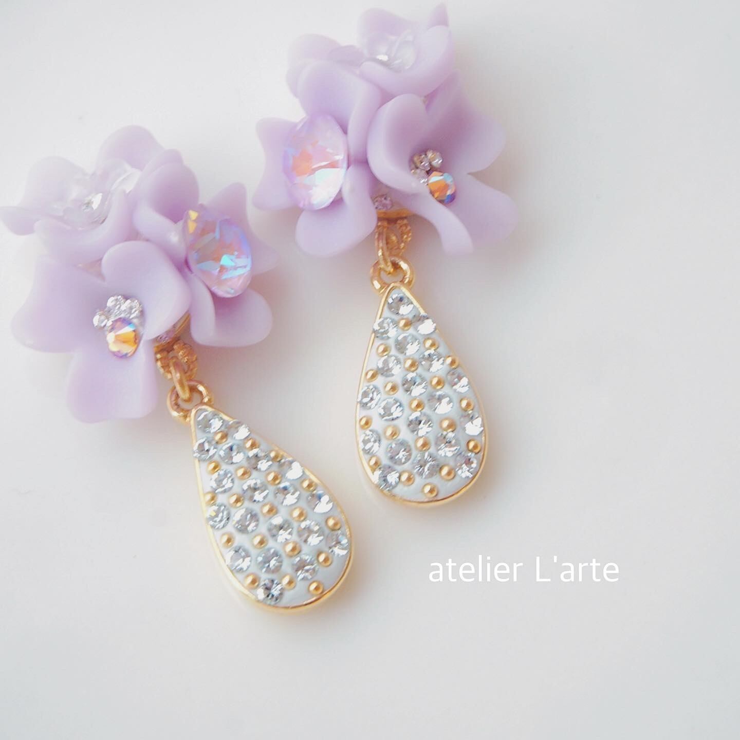 ラベンダーカラーのお花のモチーフにごく淡い水色のスワロフスキーデコレーションを施した